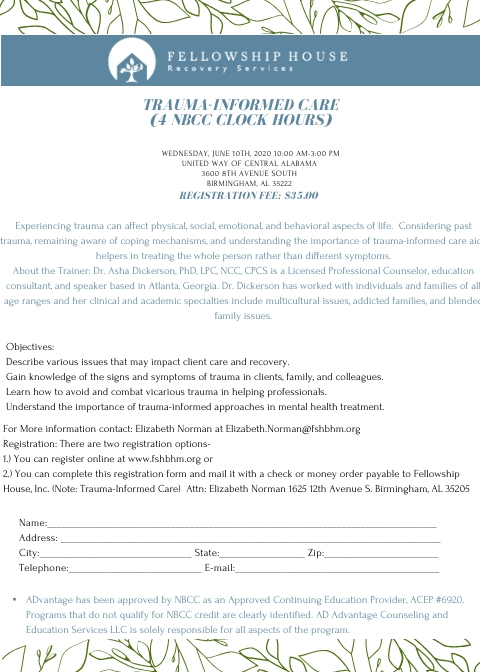 Fellowship House, Inc. – Trauma Training