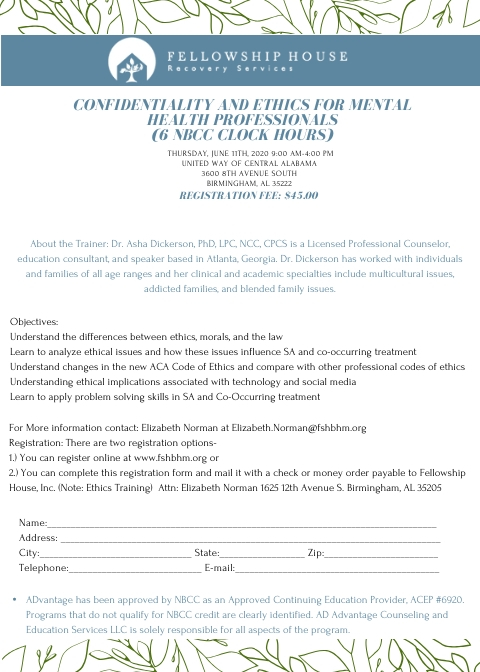 Fellowship House, Inc. – Confidentiality and Ethics Training